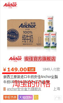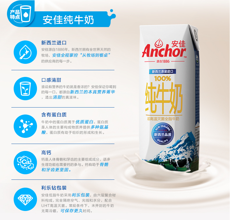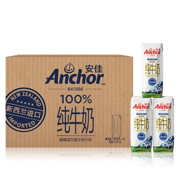 新西兰原装进口牛奶安佳Anchor全脂牛奶UHT纯牛奶250ml*24盒/箱(比某宝还便宜)